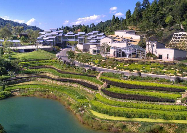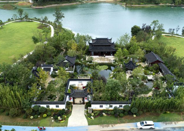园区坚持“山水林田湖草生命共同体”理念,沿湖打造了56个各具特色的展园,所谓“一园入、百城现”。56个展园56种景象,宛如一幅绿水青山新画卷徐徐展开。