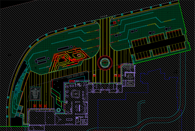 该项目施工内容主要涉及了儿童活动区、停车场绿墙及围挡、大台阶景观、特色镜面水景、特色矮墙、互动感应旱喷、特色坐凳花池以及特色树池等。
