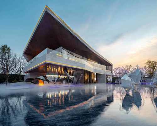 该项目于2019年10月8日正式开工,地处成都市双流区剑南大道,内设中心大水景、跌级水景、挑台水景、前场跌级水景、下沉式平台、前场区域庭院、样板房台地及花池、样板房二层挑台等节点。