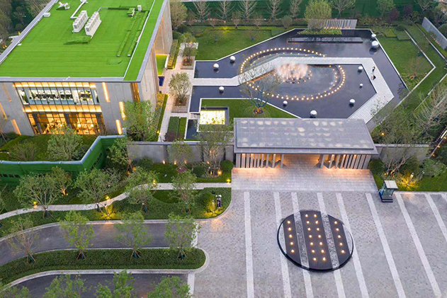 本项目位于济南市历城区彩石镇,由卡座、种植池、景墙、入口小水景、配套雾森系统水景、入口大门、后场组景和停车场等几部分组成,项目总面积约为10110㎡,其中硬质铺装面积约6100㎡,绿化面积约4010㎡。