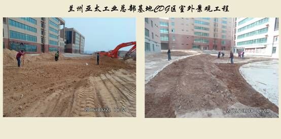随着春季气温回升,我公司于兰州新区亚太工业总部基地CDG区的项目全面复工,目前施工人员已全部到位,正在抓紧建设中。该项目在2014年冬季停工前已完成总工程量的40%,包括大面积的景观硬化以及部分节点景观的建造。项目全面复工后,预计于2015年8月31日竣工。