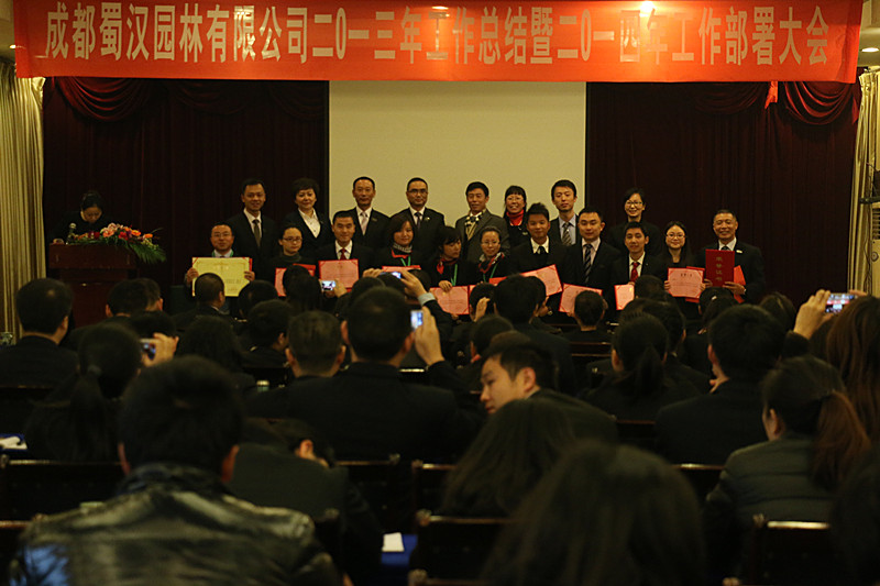 2014年1月23日上午我司召开了2013年年终总结暨2014年工作布署大会。整个会议历时三个半小时。会上,公司领导纷纷发表致词并对2013年公司营运状况进行总结以及对2014年进行新的战略规划和布署。会议期间,还对公司2013年度涌现出的“优秀团队”、“优秀员工”进行了现场表彰。与此同时我司还有部分工作人员依旧奋斗在前线,在此,我们向他们致以深深的敬意,向他们道一声:幸苦了。本次会议还体现了我司 “以人为本”的亲情理念,各领导多次建议员工有空常回家看看,多陪陪和关心父母长辈。最后,会议在大家齐唱《相亲相爱的一家人》的歌声中缓缓落下帷幕。